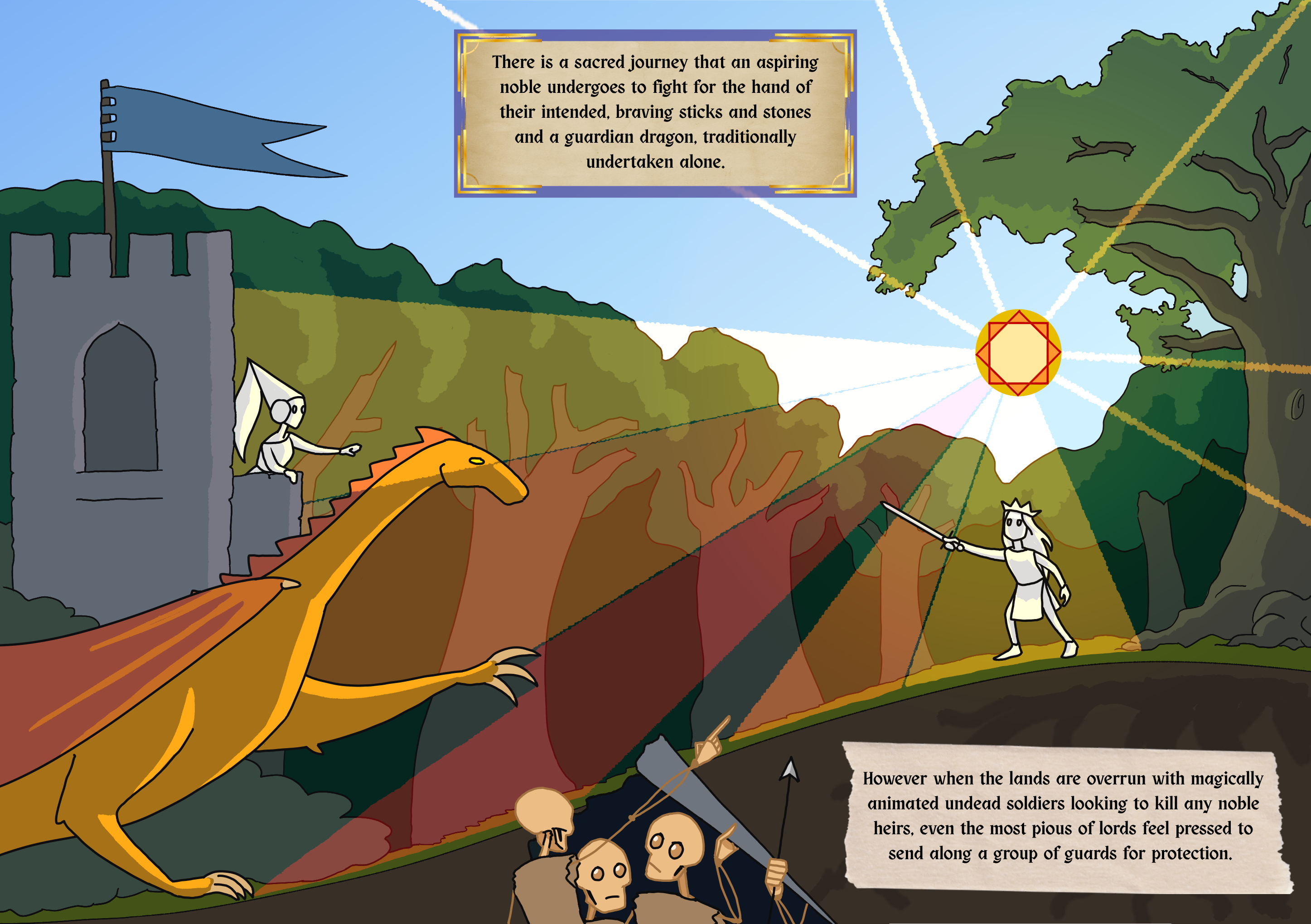 A bit of history: In the alliance of kingdoms, a long time ago, the sacred dragons ruled along the volcanic ridge, being respected an honored by the human settlements nearby. But slowly, those settlements began to grow and solidify, and the newly emerged kings of those groups sought to expand their territory. The dragons did not tolerate some measly humans with pointy sticks trying to take over their homes and breeding grounds, and a terrible bloody war reigned between the two for over a hundred years, diminishing both populations. Two centuries ago, a group of powerful humans struck peace with the remaining dragon elders, the most important pact that all kings and dragons honour now, during the reign of the alliance of kingdoms.